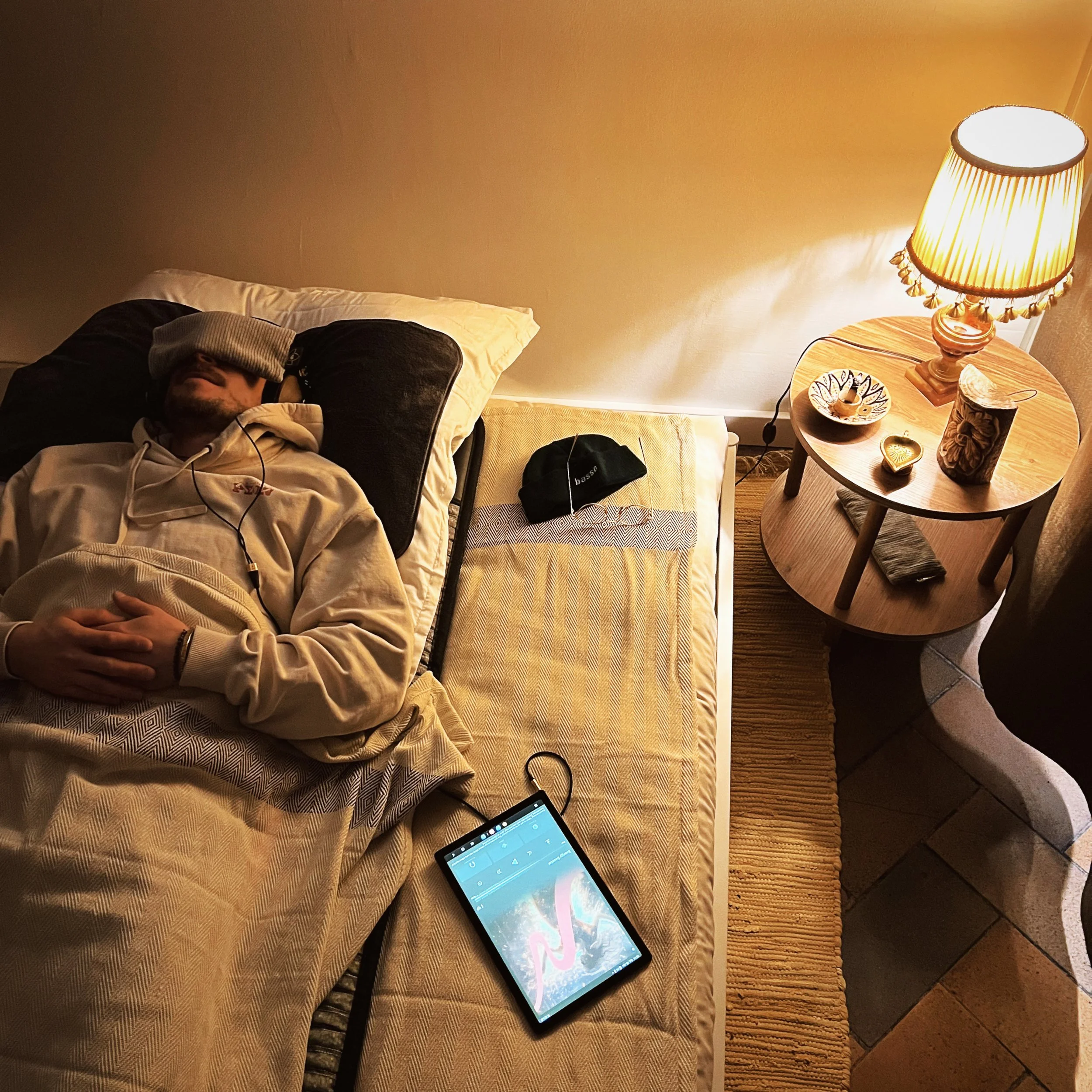 book your session in a warm bath of frequencies, biotphotones, magnet field waves and brainwave sounds